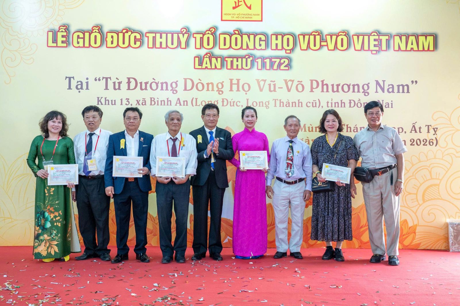 Sau phần tuyên bố lý do, giới thiệu Đại biểu của MC Trần Hoàn và MC Vũ Thạch Hãn-UV.BCH, ông Vũ Ngọc Thạch- Chủ tịch HĐDH đọc lời khai mạc. Long trọng tổ chức lễ cắt băng khánh thành “Nhà sinh hoạt Dòng họ Vũ-Võ Phương Nam”, rộng gần 600 m2 trong khuôn viên Từ đường. Phần lễ dâng hương, đọc văn tế do ông Vũ Ngọc Thạch làm chủ tế, Tiếp theo, ông Vũ Văn Dũng đọc báo cáo sơ lược hoạt động 2025, phương hướng năm 2026. Sau đó, phát 11 bằng mừng thọ cho các cụ từ 80 tuổi trở lên; 30 bằng khen cho các tập thể và cá nhân hoạt động tích cực; 13 bằng khuyến học-khuyến tài cho các cháu nội, ngoại học giỏi các cấp; Tri ân quý vị đã công đức xây dựng “Nhà sinh hoạt Dòng họ Vũ-Võ Phương Nam”…