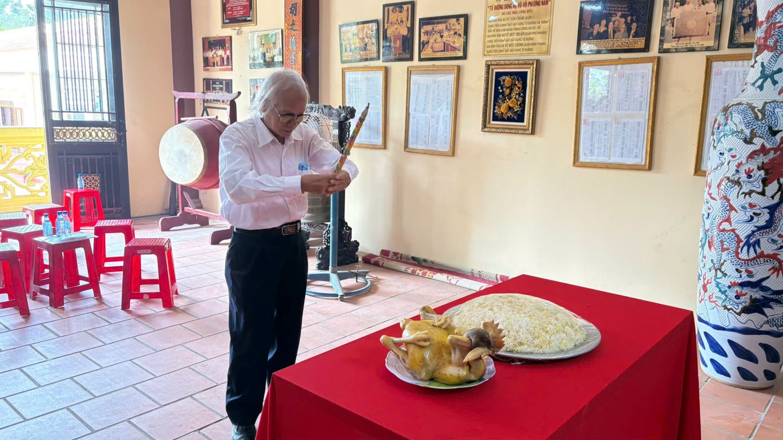 Sau phần tuyên bố lý do, giới thiệu đại biểu của ông Vũ Hường-PCT, ông Vũ Ngọc Thạch-Chủ tịch, chúc mừng năm mới bà con và nêu tóm tắt về công đức của Thủy Tổ, sau đó tất cả cùng dâng hương lên Thủy Tổ.