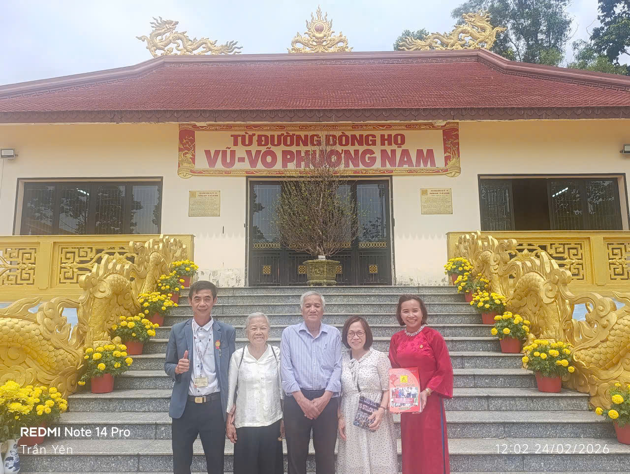 Sáng ngày 24-02-2026 (Nhằm Mồng Tám, tháng Giêng, năm Bính Ngọ), HĐDH Vũ-Võ Phương Nam-TP.HCM đã tổ chức Kỷ niệm ngày sinh lần thứ 1222 năm của Thủy Tổ Vũ Hồn (804-853), tại “Từ đường Dòng họ Vũ-Võ Phương Nam”, đường Nguyễn Thị Gìơ, khu 13, xã Bình An (Xã Long Đức, huyện Long Thành cũ), tỉnh Đồng Nai. Đến dự lễ có Đại diện Hội đồng họ Trần TP.HCM và đông đảo bà con họ Vũ-Võ cùng dâu, rể, cháu, chắt nội, ngoại từ các tỉnh Đồng Nai, Bà Rịa-Vũng Tàu, Long An, Bình Dương, thành phố Hồ Chí Minh, Đồng Tháp… mọi người đều rất vui mừng, phấn khởi được về Từ đường dâng hương bái vọng, tri ân Tổ tiên nhân dịp đầu Xuân.