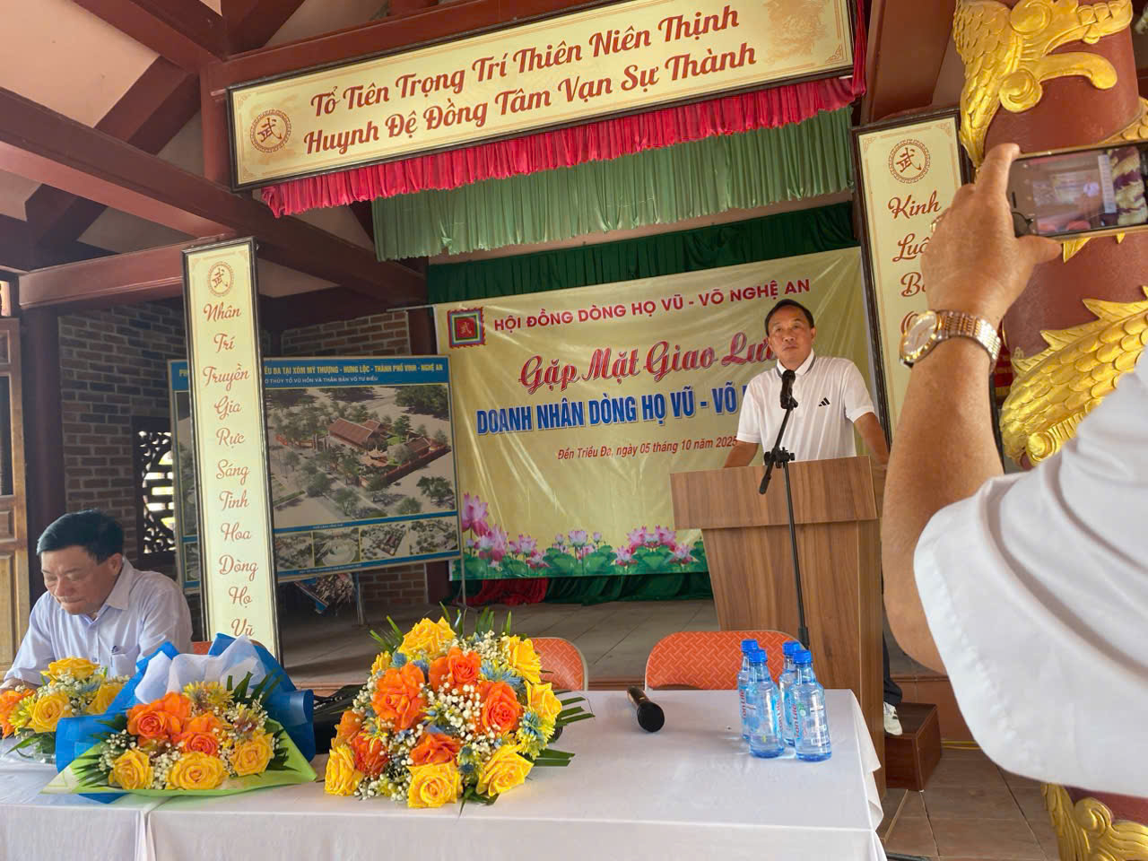 Sáng Chủ nhật, ngày 05-10-2025, tại:”Nhà thờ họ Vũ-Võ tỉnh Nghệ An”, 136 Phan Văn Chí, khối Mỹ Thượng, phường Vinh Lộc, tỉnh Nghệ An. HĐDH Vũ-Võ tỉnh Nghệ An đã long trọng tổ chức cuộc gặp mặt giao lưu các Doanh nhân Dòng họ Vũ-Võ tỉnh Nghệ An, nhân kỷ niệm lần thứ 21 ngày DNVN. Đến dự có ông Võ Viết Thanh-CT.HĐDH Vũ-Võ tỉnh Nghệ An, các ông PCT: Võ Đức Phong (TT), Võ Ngọc Phan, Võ Huy Liệu…Ô.Võ Văn Nhẫn-Cố vấn, Ô.Võ Văn Yên-Nguyên CT. HĐDH…Cùng các vị trong BCH và Doanh nhân trong họ.