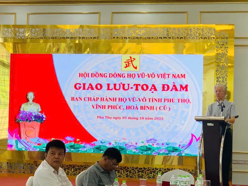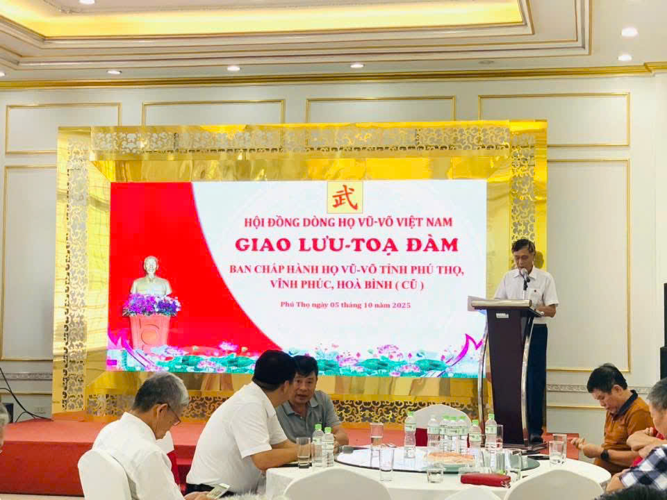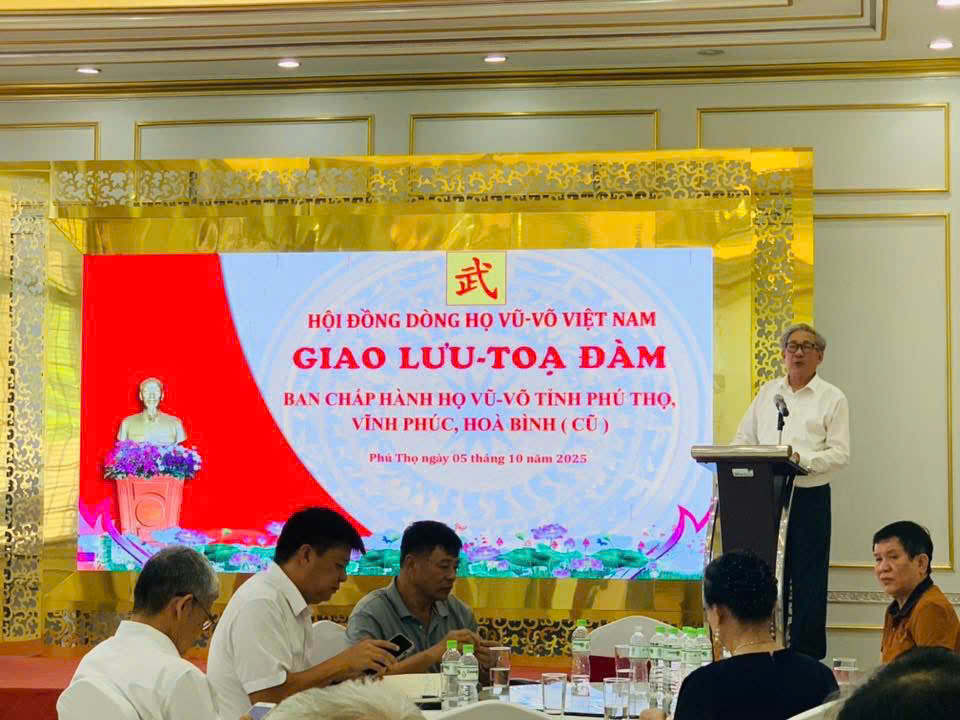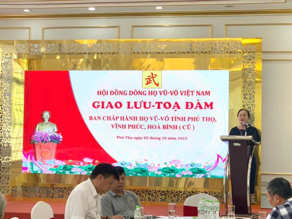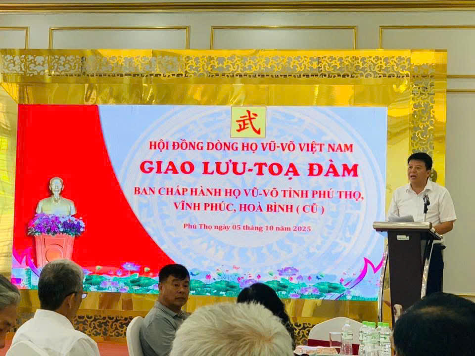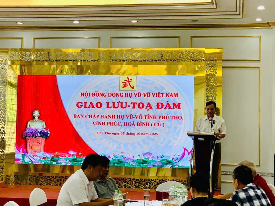 Sáng ngày 05-10-2025, tại Sen Vàng Palace, tỉnh Phú Thọ, cuộc giao lưu họp mặt Ban Chấp hành dòng họ Vũ-Võ các tỉnh Phú Thọ, Hòa Bình, Vĩnh Phúc, đã diễn ra trong không khí trang trọng, đoàn kết và thắm tình đồng tộc.