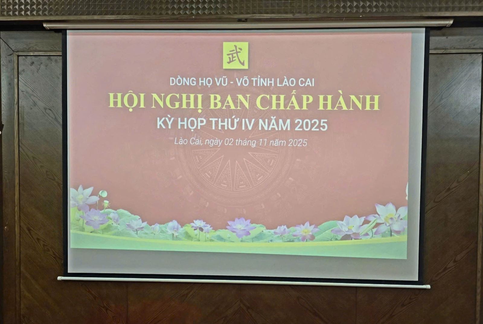 Sáng ngày 02-11-2025, Ban Chấp hành Hội đồng Dòng họ Vũ-Võ tỉnh Lào Cai tổ chức Hội nghị Ban Chấp hành tại phòng họp Khách sạn Đức Huy Grand, TP. Lào Cai, tỉnh Lào Cai. Hội nghị do ông Vũ Duy Mến-Chủ tịch HĐDH Vũ-Võ tỉnh Lào Cai chủ trì, để triển khai một số nội dung quan trọng như: