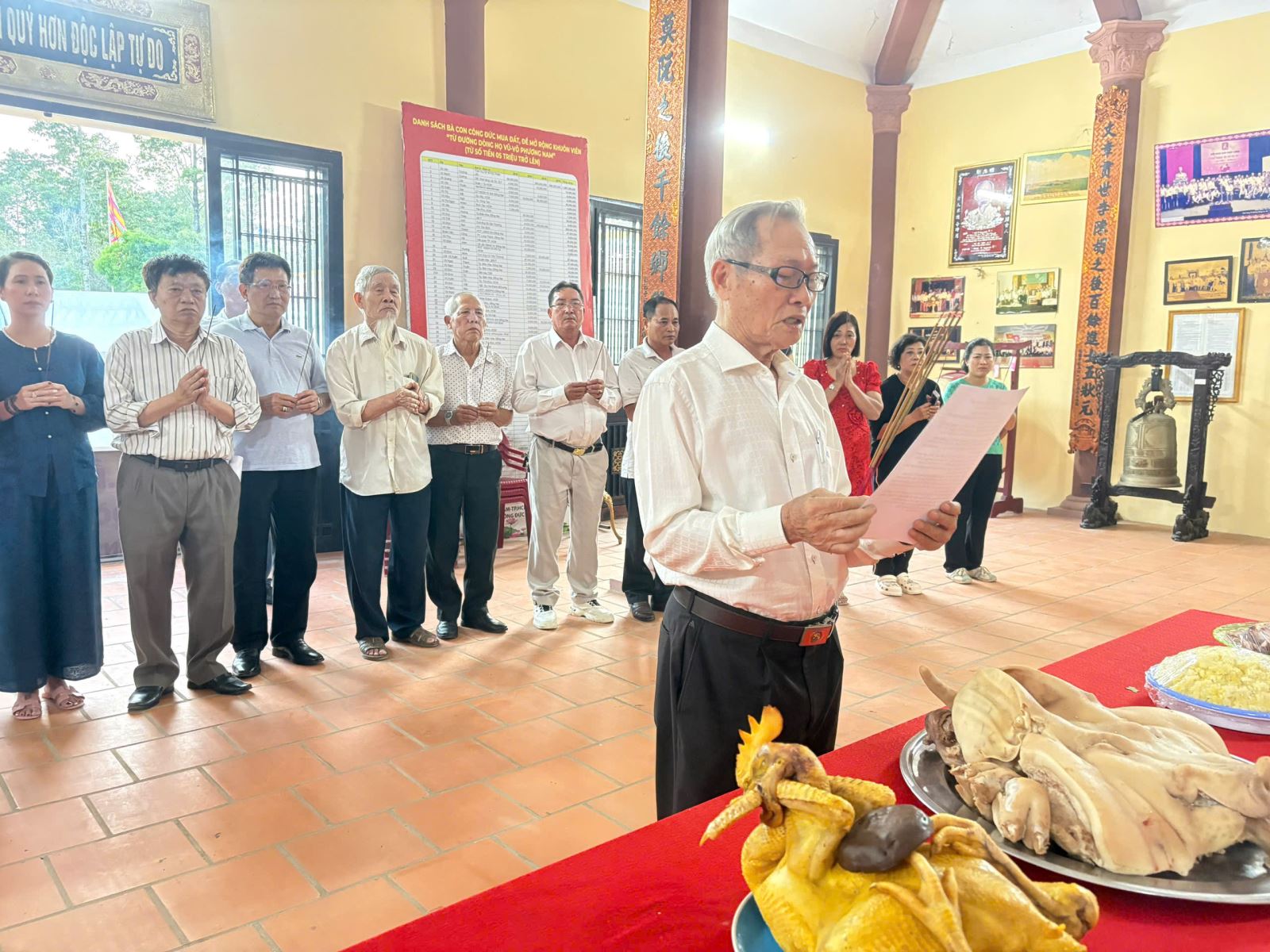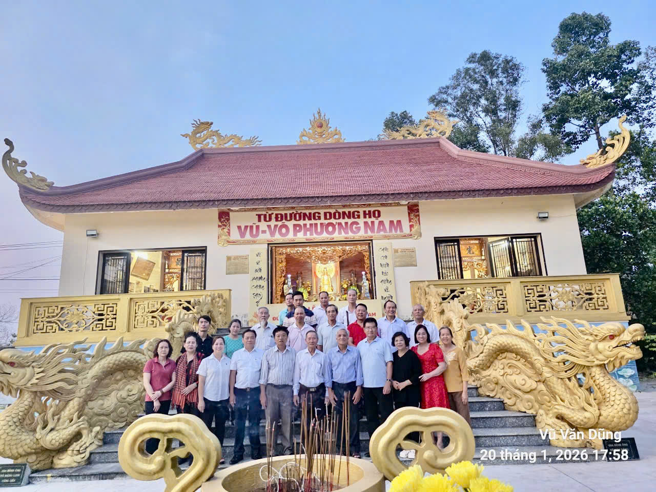 Chiều ngày 20-01-2026 (Nhằm Mùng Hai, tháng Chạp, năm Ất Tỵ), Ban Lãnh đạo HĐDH.Vũ-Võ Phương Nam-TP.HCM, gồm các ông, bà: Vũ Ngọc Thạch-Chủ tịch; Vũ Văn Dũng (TT), Vũ Hữu Chính, Vũ Hường, Võ Đăng Linh-Đồng PCT; Võ Thị Phượng, Vũ Anh Việt, Vũ Thị Hạnh Trang, Vũ Kế Hoạch, Vũ Văn Huấn, Vũ Ngọc Hoa, Vũ Văn Mạnh, Vũ Quang Nhị, Vũ Mạnh Cường, Vũ Sơn, Vũ Thanh Hải, Vũ Văn Thanh, Vũ Văn Châm, Vũ Xuân Phong, Vũ Hương Giang, Vũ Thị Thu, Nguyễn Thị Cúc, Như Đỗ…đã đến “Từ đường Dòng họ Vũ-Võ Phương Nam” làm lễ kính cáo Thuỷ Tổ để chuẩn bị cho ngày mai tổ chức giỗ Tổ. Đồng thời, HĐDH.Vũ-Võ Phương Nam-TP.HCM cũng đã tiếp nhận 200 bánh ít lá gai của ông Vũ Văn Thuận-Nguyên Phó Chủ tịch HĐDH.Vũ-Võ tỉnh Bình Định và 03 cặp nến thơm của ông Vũ Mạnh Cường (Lộc Ấn) để dâng hương Tổ.