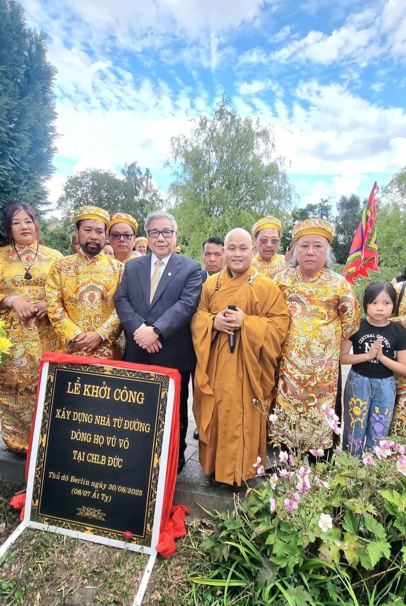 Ngày 30-8-2025, HĐDH Vũ-Võ CHLB Đức, đã hoan hỷ tổ chức Lễ động thổ và khởi công xây dựng “Từ đường Dòng họ Vũ-Võ CHLB Đức” tại Thủ đô Berlin. Đến dự HĐDH Vũ-Võ Việt Nam, có ông Vũ Minh Giang-CT, ông Vũ Trường-UVBTV, bà Vũ Thị Ngà-UVBCH…; Ô.Vũ Nguyên Thái-CT.HĐDH Vũ-Võ TP.Hải Phòng; Ô.Vũ Đức Khiển-PCT. HĐDH Vũ-Võ Phương Nam-TP.HCM; Ô.Vũ Duy Mến-CT.HĐDH Vũ-Võ tỉnh Lào Cai; Ô.Vũ Trí Thức-CT. HĐDH Vũ-Võ tỉnh Ninh Bình… đại diện các họ Dương, họ Lê… Cùng đông đảo con cháu, dâu rể trong Dòng họ Vũ-Võ từ mọi miền nước Đức và Châu Âu đã về dự.