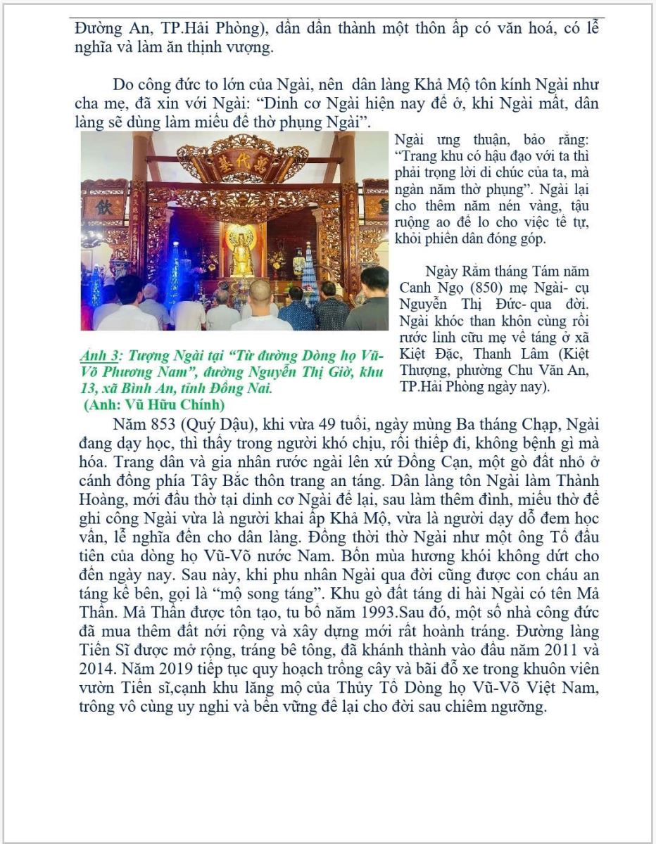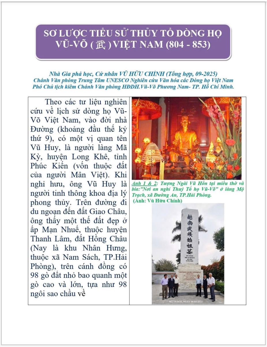 SƠ LƯỢC TIỂU SỬ THUỶ TỔ DÒNG HỌ VŨ-VÕ VIỆT NAM (804-853)