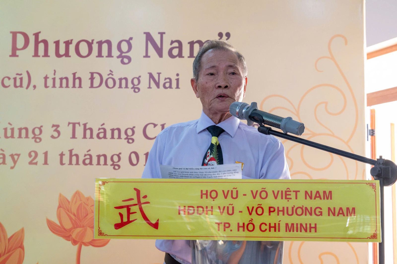 Sau đó, ông Vũ Ngọc Thạch-CT.HĐDH Vũ-Võ Phương Nam-TP. Hồ Chí Minh lên tiếp thu các ý kiến, cùng gửi lời cám ơn chân thành đến quý vị đã công đức và đến dự giỗ Tổ. Về dâng những nén tâm hương bái vọng trong ngày giỗ Đức Thủy Tổ năm nay có gần 500 con cháu Tổ ở khắp mọi miền đất nước, với tâm nguyện mong Tổ tiên phù hộ độ trì cho mọi thế hệ con cháu người người được mạnh khỏe, nhà nhà đều hạnh phúc, bình an, sản xuất, kinh doanh, học hành đều thành đạt.