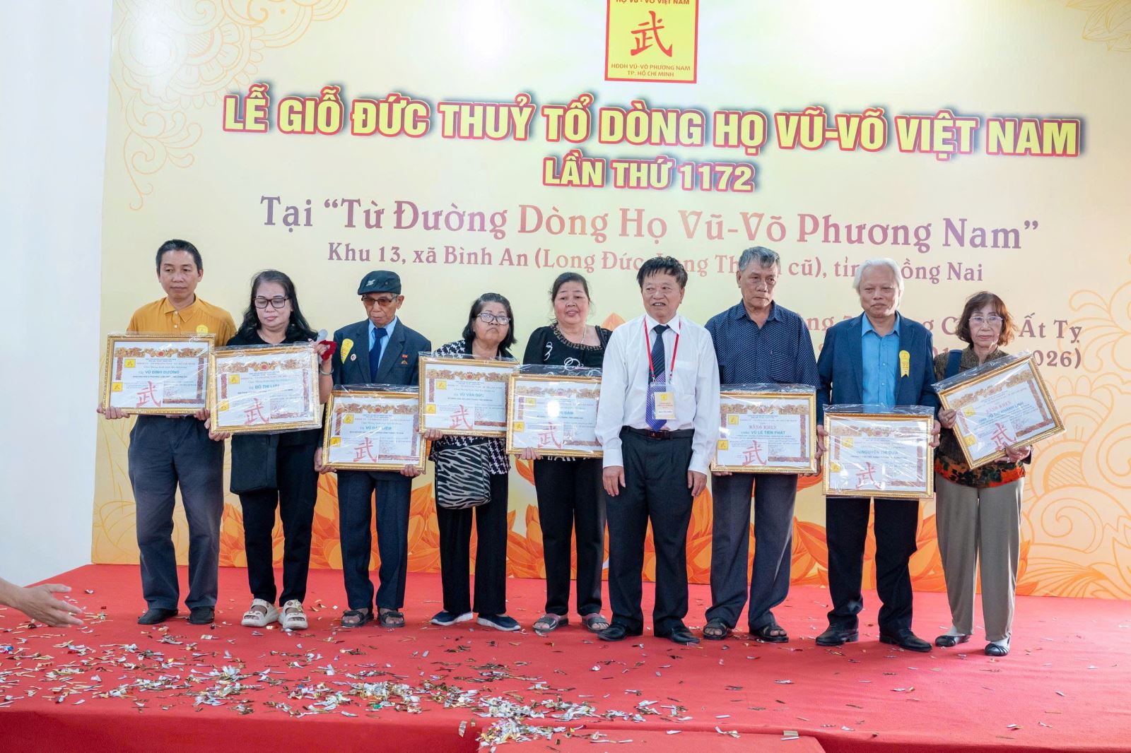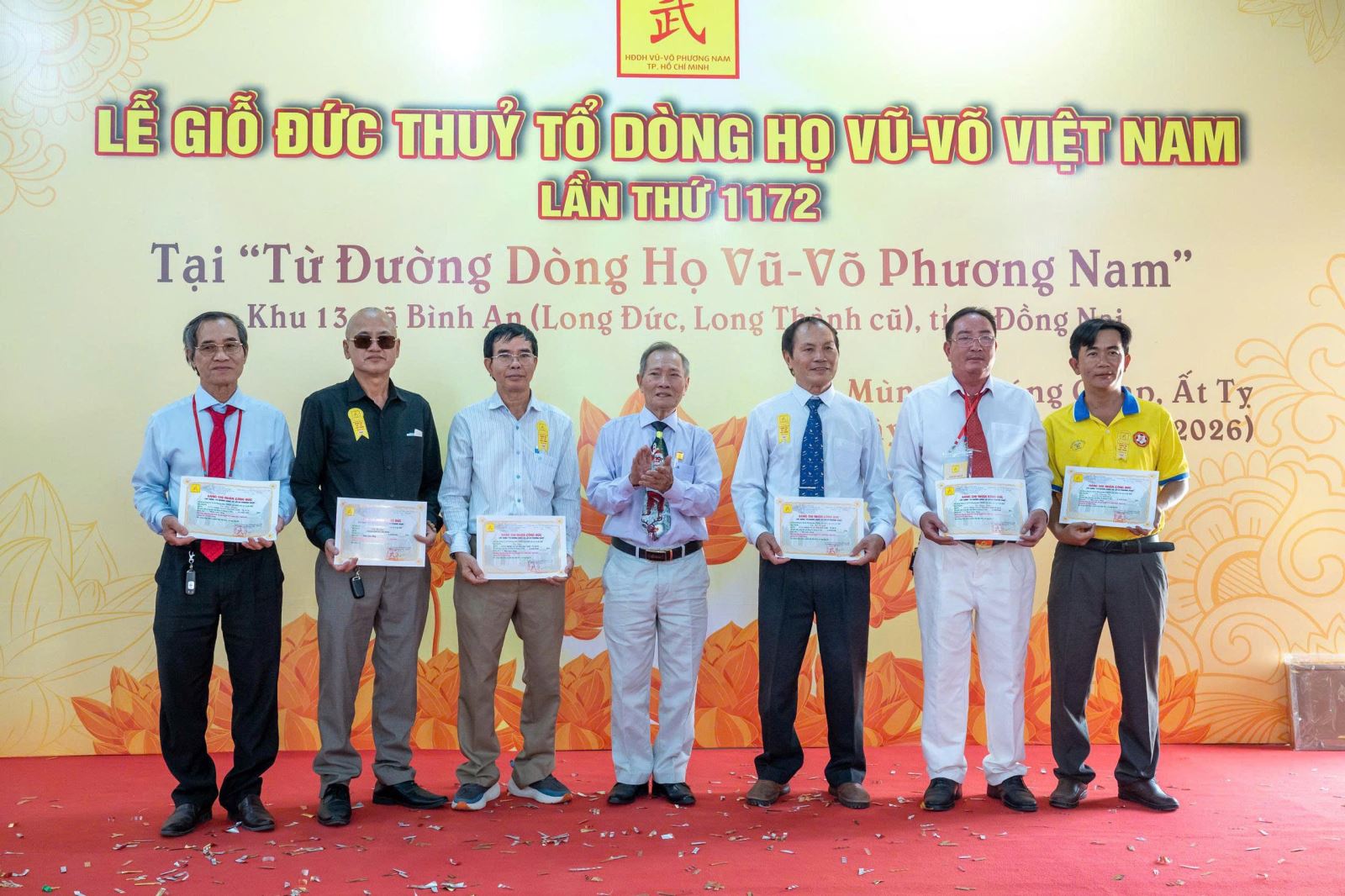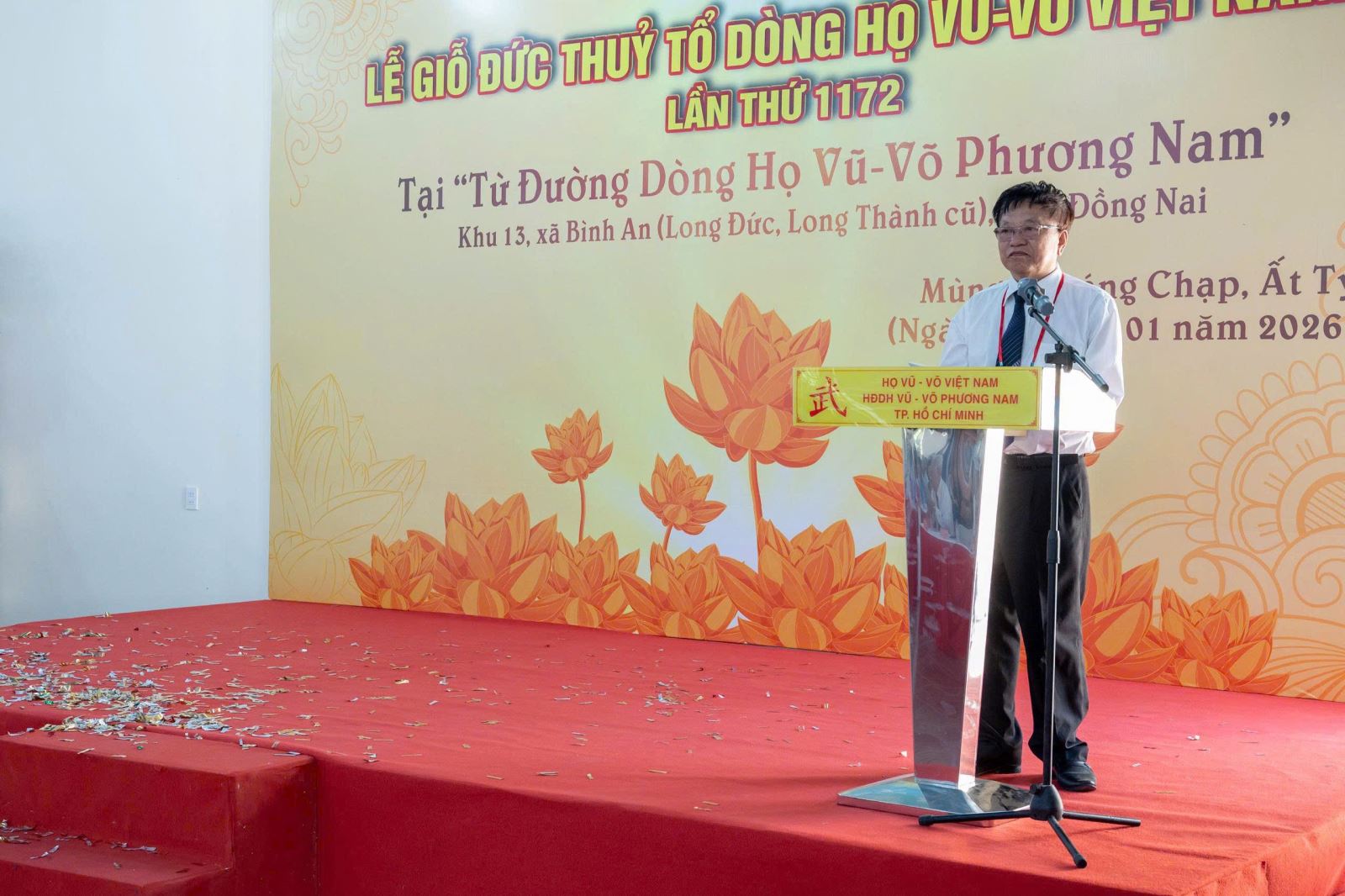 Sau phần tuyên bố lý do, giới thiệu Đại biểu của MC Trần Hoàn và MC Vũ Thạch Hãn-UV.BCH, ông Vũ Ngọc Thạch- Chủ tịch HĐDH đọc lời khai mạc. Long trọng tổ chức lễ cắt băng khánh thành “Nhà sinh hoạt Dòng họ Vũ-Võ Phương Nam”, rộng gần 600 m2 trong khuôn viên Từ đường. Phần lễ dâng hương, đọc văn tế do ông Vũ Ngọc Thạch làm chủ tế, Tiếp theo, ông Vũ Văn Dũng đọc báo cáo sơ lược hoạt động 2025, phương hướng năm 2026. Sau đó, phát 11 bằng mừng thọ cho các cụ từ 80 tuổi trở lên; 30 bằng khen cho các tập thể và cá nhân hoạt động tích cực; 13 bằng khuyến học-khuyến tài cho các cháu nội, ngoại học giỏi các cấp; Tri ân quý vị đã công đức xây dựng “Nhà sinh hoạt Dòng họ Vũ-Võ Phương Nam”…