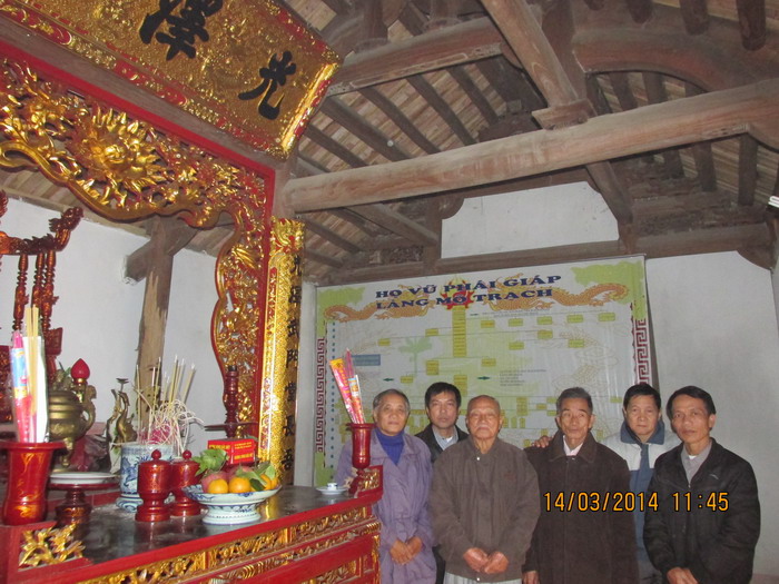 Sáng 14/3/2014, ông Vũ Hữu Cảnh, Vũ Chí Cao và Vũ Hữu Chính -Chánh Văn phòng HĐDH Vũ-Võ phương Nam, đã về dâng hương tại miếu thờ cùng lăng mộ Thủy tổ Dòng họ Vũ- Võ Việt Nam tại làng Mộ Trạch, xã Tân Hồng, huyện Bình Giang, tỉnh Hải Dương. Đoàn được ông Vũ Xuân Côi (Trưởng thôn kiêm Trưởng BQL) và ông Vũ Quốc Ái (BQL.Khu di tích) tiếp. Sau đó, vào dâng hương nhà thờ Quang Trạch Đường, thờ Tiến sĩ- nhà Sử học Vũ Quỳnh và cụ Vũ Phúc Ninh (thuộc phái Giáp, làng Mộ Trạch).