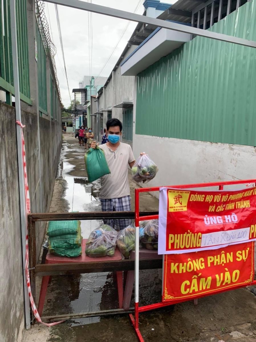 Trong thời gian từ 20/7 đến 16/8/2021, các thành viên trong BCH HĐDH Vũ-Võ Phương Nam, do các ông Vũ Ngọc Thạch- Chủ tịch HĐDH Vũ-Võ Phương Nam; Ông Vũ Văn Tĩnh- Phó Chủ tịch HĐDH Vũ-Võ Phương Nam; Ông Vũ Anh Việt- Chủ nhiệm CLB Thiện Nguyện Dòng họ Vũ-Võ Phương Nam; Ông Võ Văn Cường và ông Võ Nhất Duy - UV BCH HĐDH Vũ-Võ Phương Nam, đã trực tiếp huy động các tình nguyện viên chở hàng cứu trợ đến các UBND phường, xã, khu phong tỏa, khu cách ly, khu nhà trọ… ở phường Phước Long B, Tam Bình, Tăng Nhơn Phú, TP. Thủ Đức; Phường 9,quận Phú Nhuận; Phường 6, quận Gò Vấp; PhườngThới An, Tân Hưng Thuận, Quận 12; Xã Tân Xuân, Bà Điểm, huyện Hóc Môn; Xã Phạm Văn Hai, huyện Bình Chánh; Các phường BìnhTrị Đông A và B, An Lạc, TânTạo, quận BìnhTân; Phường 15, quận Tân Bình; Xã Hựu Thạnh, huyện Đức Hòa, tỉnh Long An; Khu cách ly tại trường THCS Phú Long, phường Lái Thiêu, phường Bình Hòa; Khu ký túc xá sinhviên Đại học Thủy Lợi Bình Dương, TP. Thuận An và TP. Dĩ An, tỉnh Bình Dương; UBND xã Long Đức; Khu nhà trọ chỗ anh Vũ Thanh Hải ở Long Thànhvà bà con gần khu vực: “Từ đường Dòng họ Vũ-Võ Phương Nam”, tại khu 13, xã Long Đức, Long Thành, tỉnh ĐồngNai…